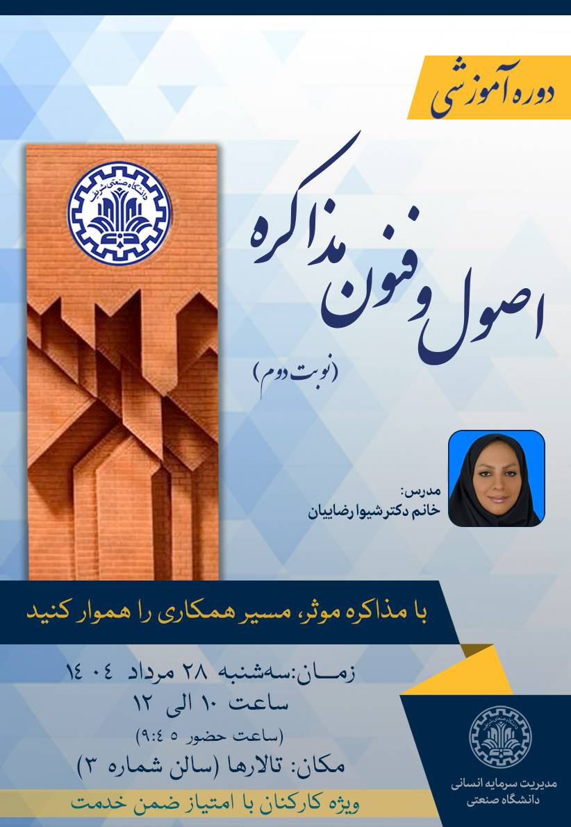 اطلاعیه برگزاری دوره تکمیلی اصول و فنون مذاکره کارکنان